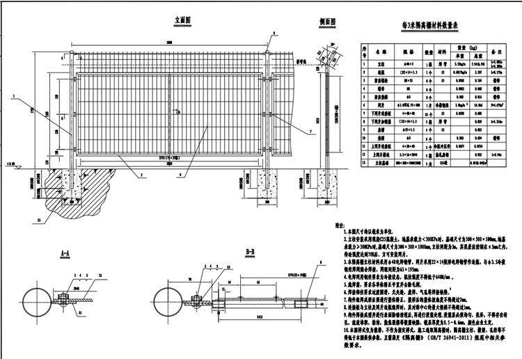 10.本圖樣式僅為推薦,不作為指定樣式,施工選取焊接網(wǎng)隔離柵時(shí)焊接網(wǎng)隔離柵立柱、橫梁、孔徑等不得低于本圖提供參數(shù),且需滿足《隔離柵》( GB/T 26941-2011)規(guī)范中相關(guān)參數(shù)要求。