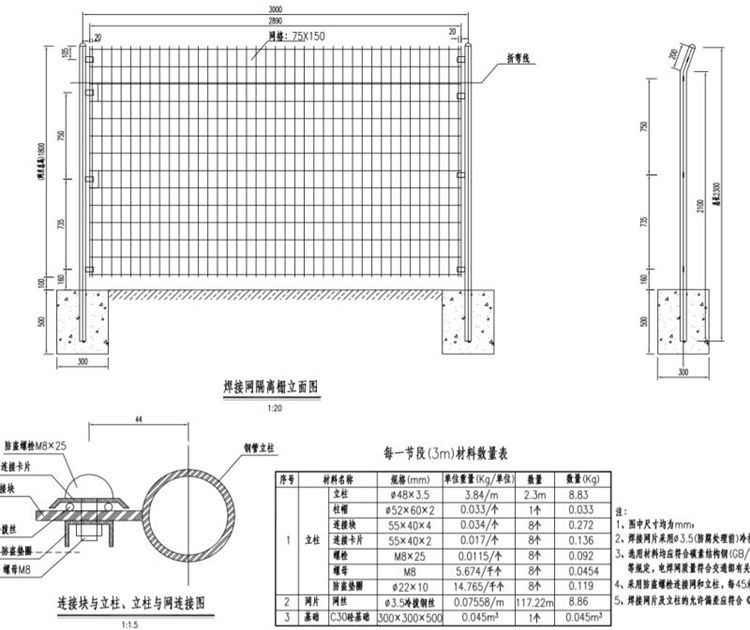 1、圖中焊接網(wǎng)隔離柵尺寸均為mm。