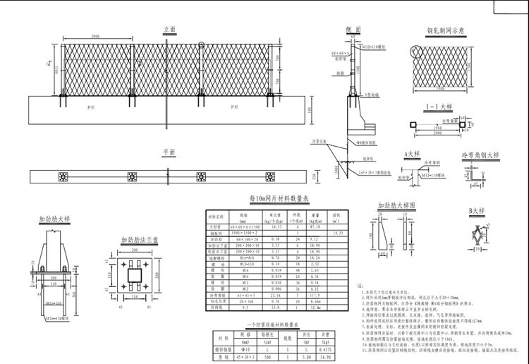 7.表面處理:立柱、連接件及金屬網采用鍍鋅防腐處理。