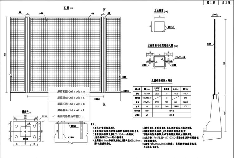 1.圖中公路橋梁隔離網(wǎng)尺寸單位均以毫米計(jì)。
