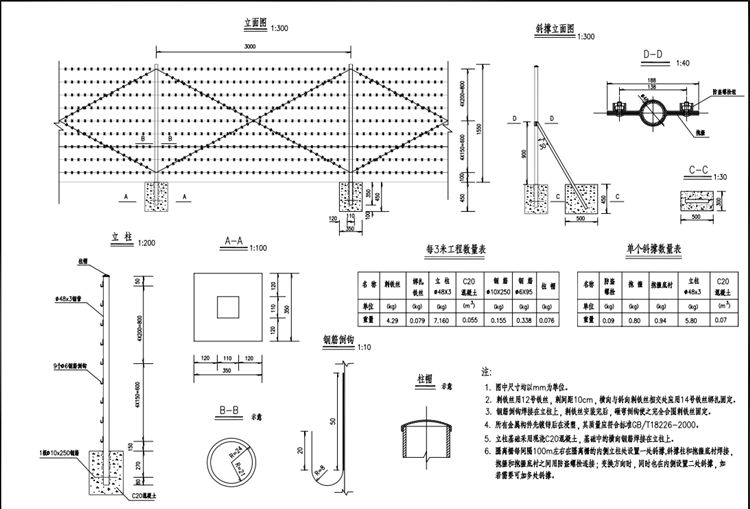 全線除天然屏障處(河流、溝渠等),其余地方(包括旱橋部分)均連續(xù)設置結(jié)構合理、美觀大方的刺鐵絲隔離柵。一般路段采用刺鐵絲隔離柵。刺鐵絲隔離柵應設在路基兩側(cè)用地界碑內(nèi)0.3米處,地形有起伏時,刺鐵絲隔離柵按階梯形設置;刺鐵絲隔離柵遇到≤3米的溝渠或涵洞時,可采用直接經(jīng)過;每段刺鐵絲隔離柵的起終點或刺鐵絲隔離柵需要斷開的地方,應針對不同的情況做端頭圍封,在刺鐵絲隔離柵需改變方向的地方,應做拐角處理。刺鐵絲隔離柵基礎預制施工。為滿足公路、橋梁和通道等養(yǎng)護管理的需要,可在適當位置設置便于開啟以滿足車輛或人員進出的刺鐵絲隔離柵活動門,刺鐵絲隔離柵的立柱需要根據(jù)活動門的大小和開啟情況進行加強。刺鐵絲隔離柵的鋼構件均應做熱浸鍍鋅防腐處理。鍍鋅時應符合下表的規(guī)定,熱浸鍍鋅所用的鋅應為符合《高速公路交通工程鋼構件防腐技術條件》中引用的GB/T470中所規(guī)定的0號或1號鋅錠。鍍鋅后再鍍塑,顏色為果綠色。