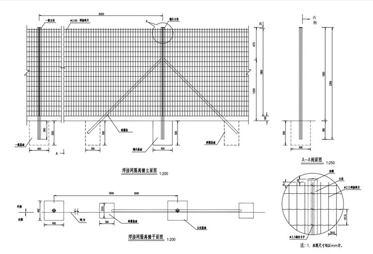 1.本圖焊接網(wǎng)隔離柵尺寸均以mm計(jì)。