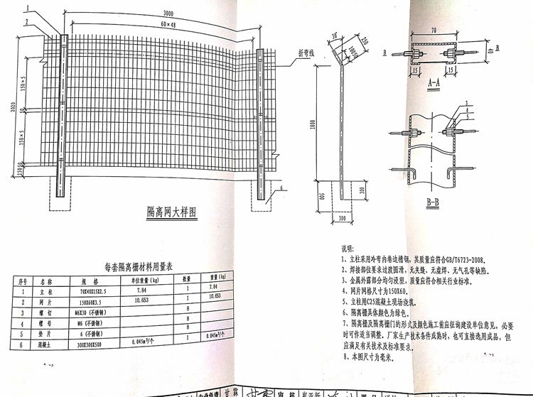 7、隔離柵及隔離柵門的形式及顏色施工前應征詢建設單位意見,必要時可作適當調(diào)整。廠家生產(chǎn)技術(shù)條件成熟時,也可直接選用成品,但應滿足有關(guān)技術(shù)及標準要求。
