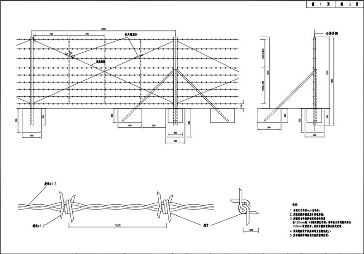 3、刺鋼絲網(wǎng)隔離柵技術(shù)要求及施工注意事項(xiàng)