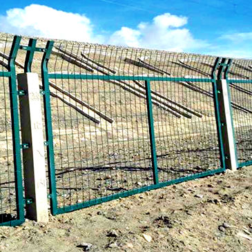 4、矩管邊框與連接板、網(wǎng)片鋼絲與矩管邊框的焊接宜采用電阻焊,如用釬焊,應(yīng)選用合適的焊條,使其變形小。焊接網(wǎng)片連接板時,連接板焊接位置應(yīng)嚴(yán)格控制在設(shè)計位置,其位置誤差≤1.5mm。焊接后應(yīng)清理焊渣。對焊接產(chǎn)生的變形、應(yīng)進(jìn)行平整處理。為保證網(wǎng)片自身有足夠強(qiáng)度,網(wǎng)片鋼絲焊接點強(qiáng)度應(yīng)大于1kN,焊接點脫落數(shù)小于2%。