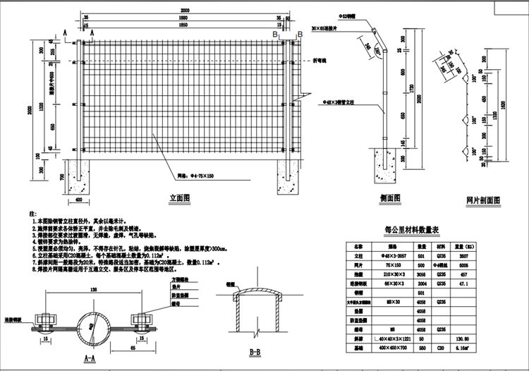 1.本圖除鋼管立柱直徑外,其余以毫米計。