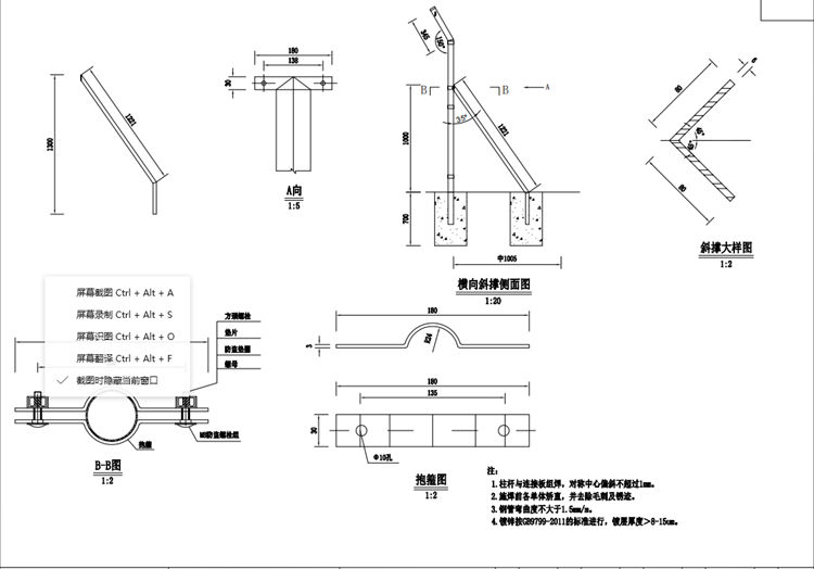 7.斜撐間距一般路段為20米,特殊路段適當(dāng)加密,基礎(chǔ)為C20混凝土,數(shù)量0.112m2。