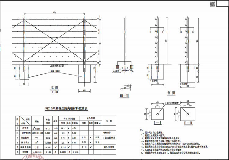 7、基礎混凝土強度達到70%后方可安裝刺鋼絲。