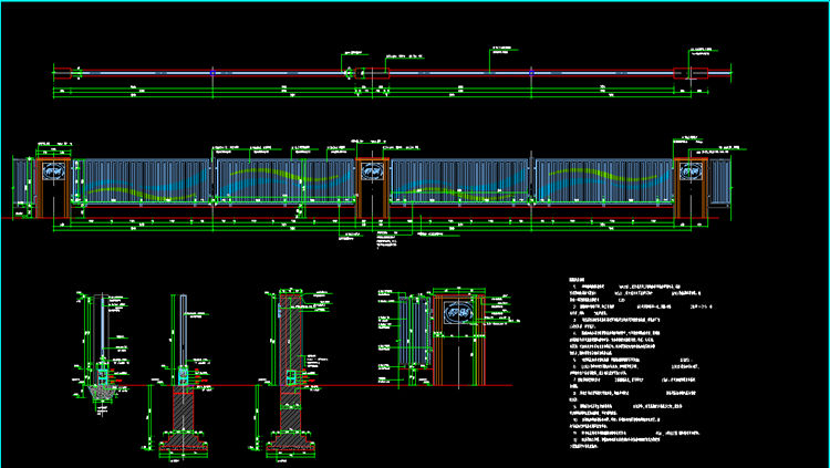 3、鐵藝欄桿與墻體鏈接處通過預制混凝土塊內(nèi)設預埋件相連接,需結合廠家二次設計后,方可施工。