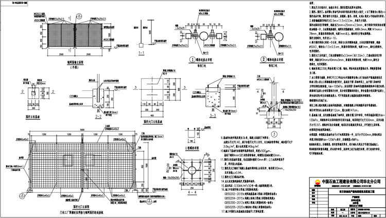 17.施工中井場圍欄立柱基礎(chǔ)應(yīng)注意避開工藝管線位置。