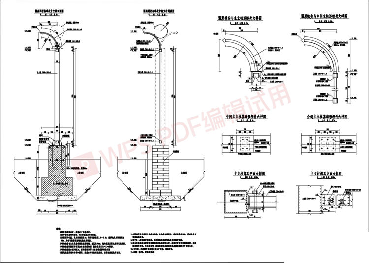 2、磚砌矮墻與主立柱基礎(chǔ)間設(shè)置結(jié)構(gòu)縫,縫寬為20mm,縫內(nèi)填高壓聚乙烯閉孔泡沫板;