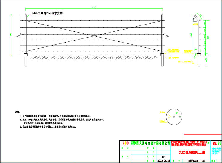 2、立柱、刺繩采用雙道防腐處理:先熱鍍鋅,再采用熱固性聚酯粉末靜電涂裝,防腐年限應達到25年。