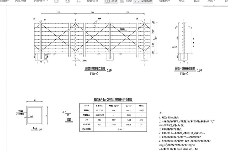 1.本圖刺鋼絲隔離柵尺寸均以mm為單位。