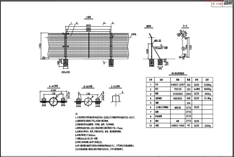 1.焊接網(wǎng)隔離柵立柱材料的力學(xué)性能應(yīng)符合GB700-2006,尺寸規(guī)格應(yīng)符合GB6723-2017。
