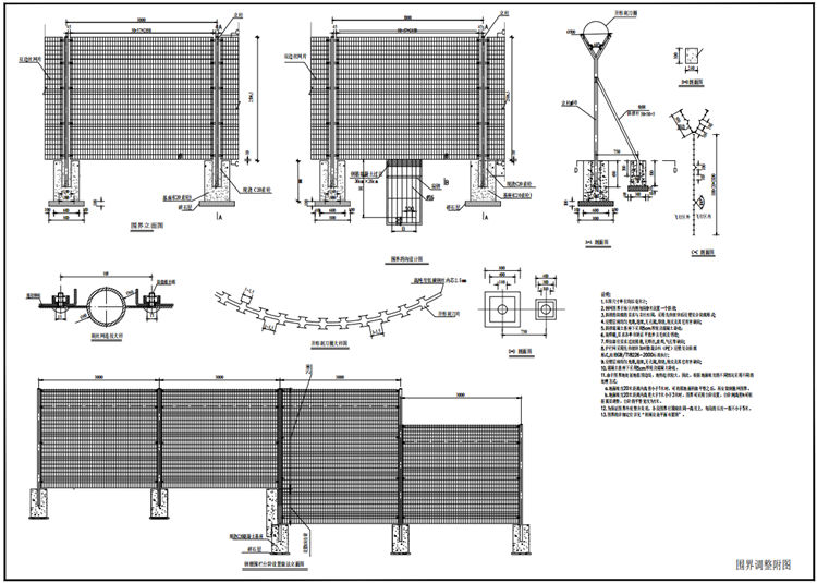 13.鋼筋網(wǎng)圍界的詳細(xì)定位詳見(jiàn)“附屬設(shè)施平面布置圖”。