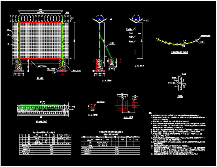 1、本圖圍欄網(wǎng)尺寸除注明外均以毫米計,比例為示意,飛行區(qū)圍欄網(wǎng)的具體位置詳見“附屬設(shè)施平面圖”。