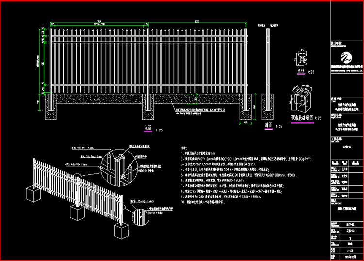 1、本圖熱鍍鋅柵欄所有尺寸計量單位為mm。