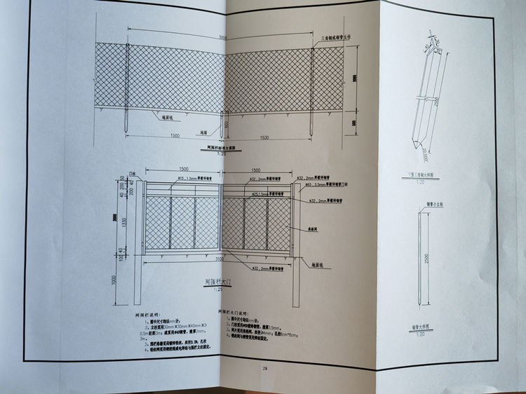 2.鉛絲網(wǎng):鋼絞線或電焊與圍欄立柱固定,刺鋼絲材質(zhì)與網(wǎng)面相同。