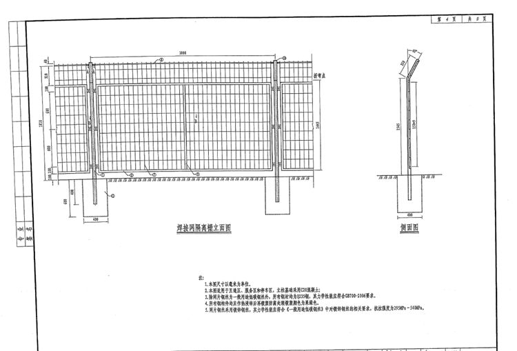 1.本圖焊接網(wǎng)隔離柵尺寸以毫米為單位。