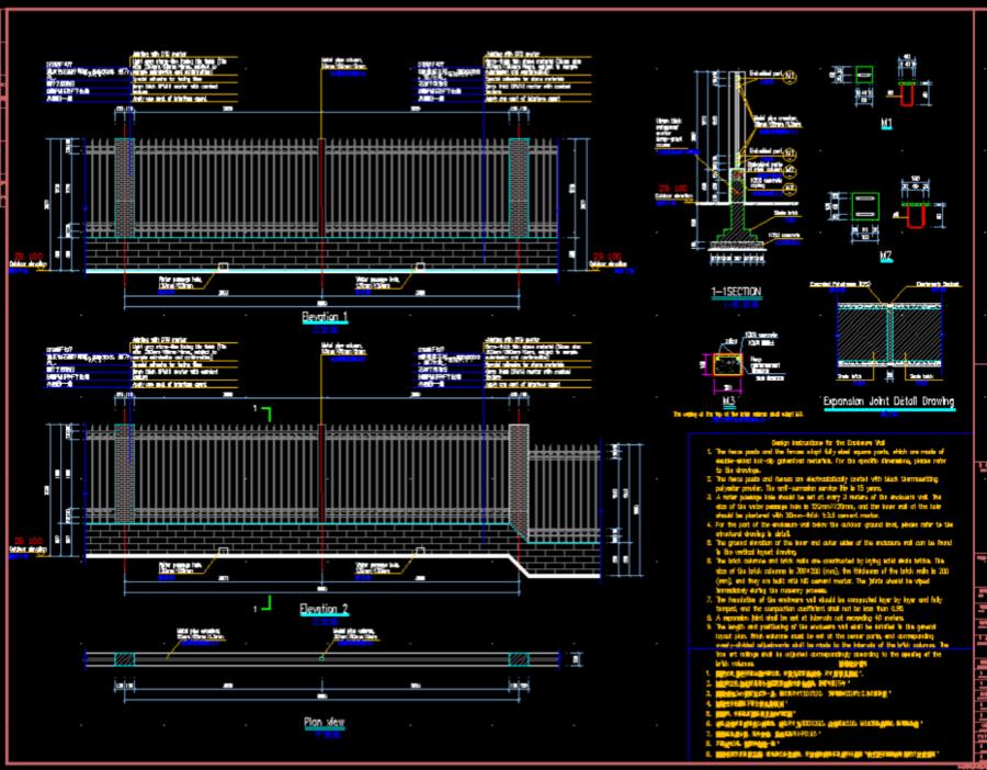 圍墻長(zhǎng)度及定位詳總圖,拐角部位必設(shè)磚柱,并對(duì)磚柱間隔作相應(yīng)均分調(diào)整。鐵藝欄桿根據(jù)磚柱間距作對(duì)應(yīng)調(diào)整。