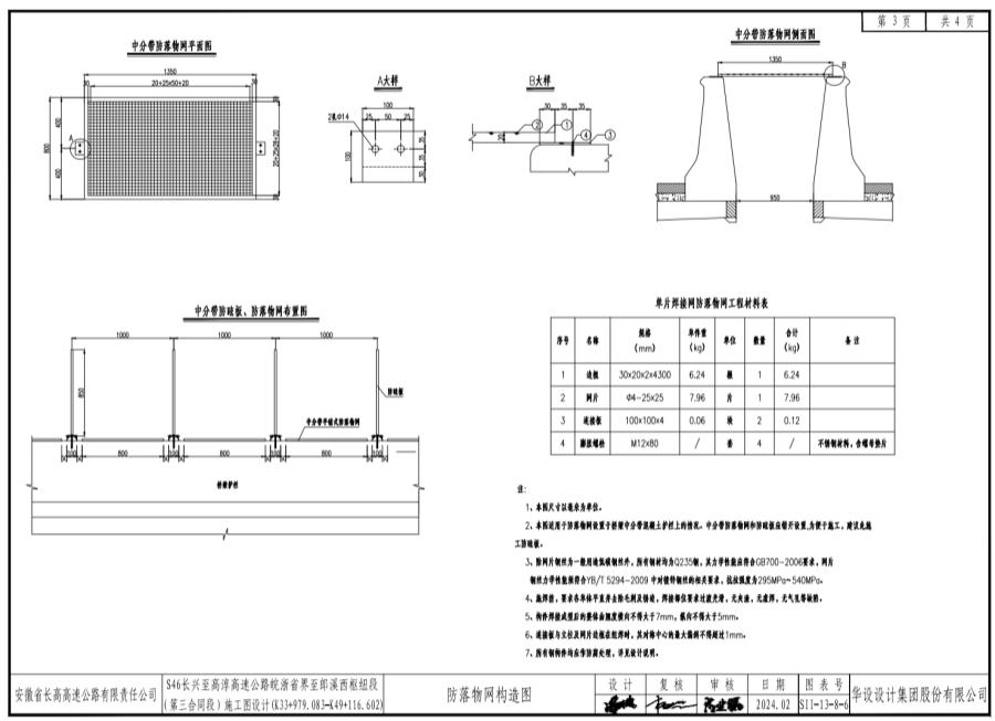 S46長(zhǎng)興至高淳高速公路皖浙省界至郎溪西樞紐段中分帶防落物網(wǎng)生產(chǎn)廠家
