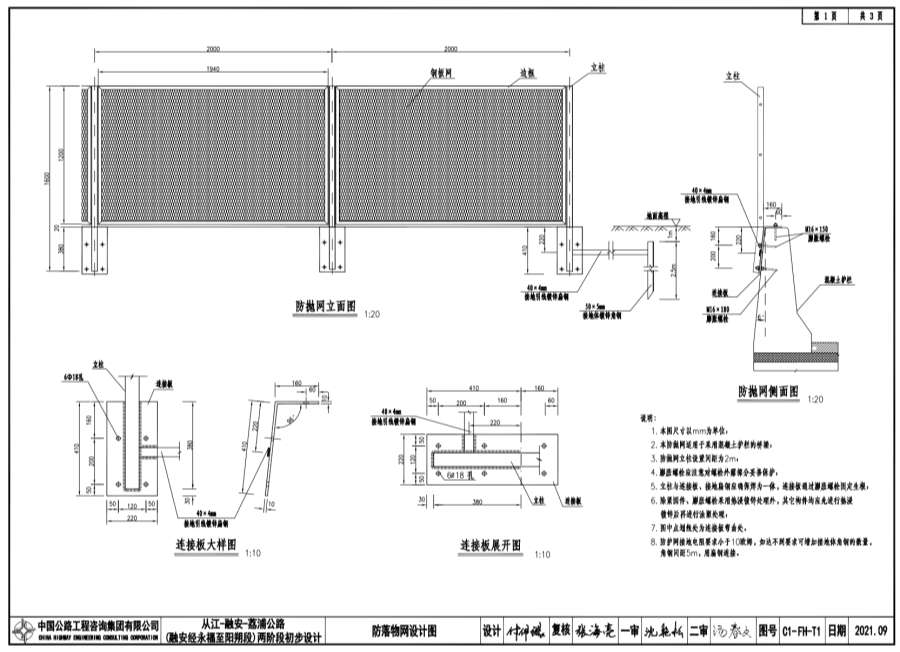3.防拋網(wǎng)立柱設(shè)置間距為2m。
