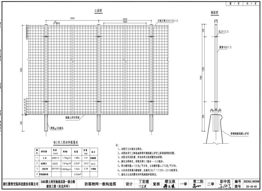 2、本圖適用于上跨高速橋梁外側(cè)混凝土護欄上防落物網(wǎng)的設置。