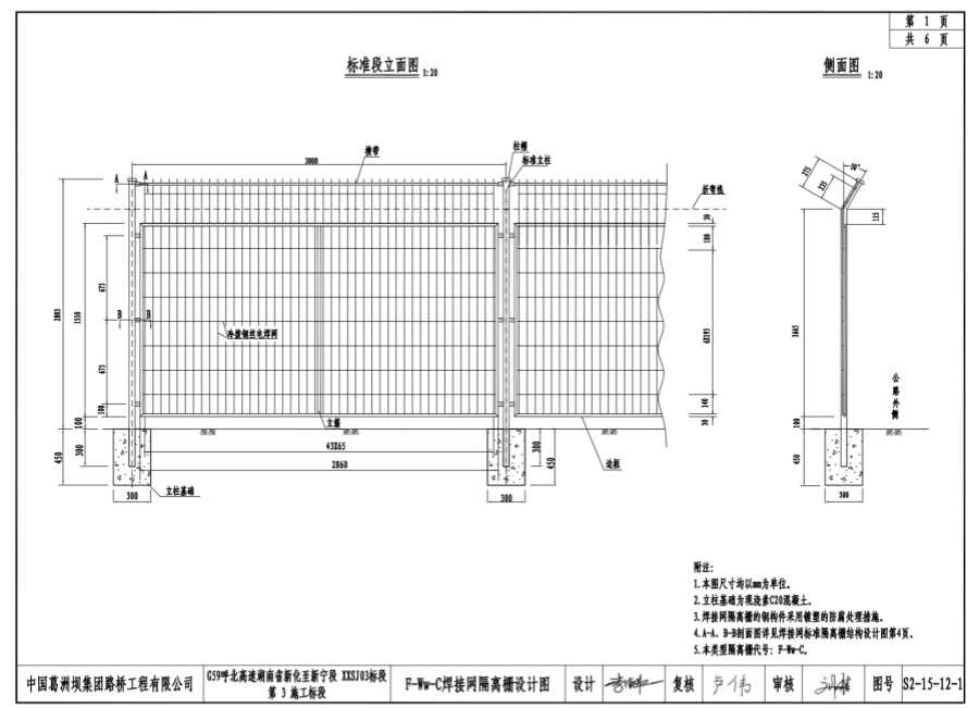 4.A-A、B-B剖面圖詳見(jiàn)焊接網(wǎng)標(biāo)準(zhǔn)隔離柵結(jié)構(gòu)設(shè)計(jì)圖第4頁(yè)。
