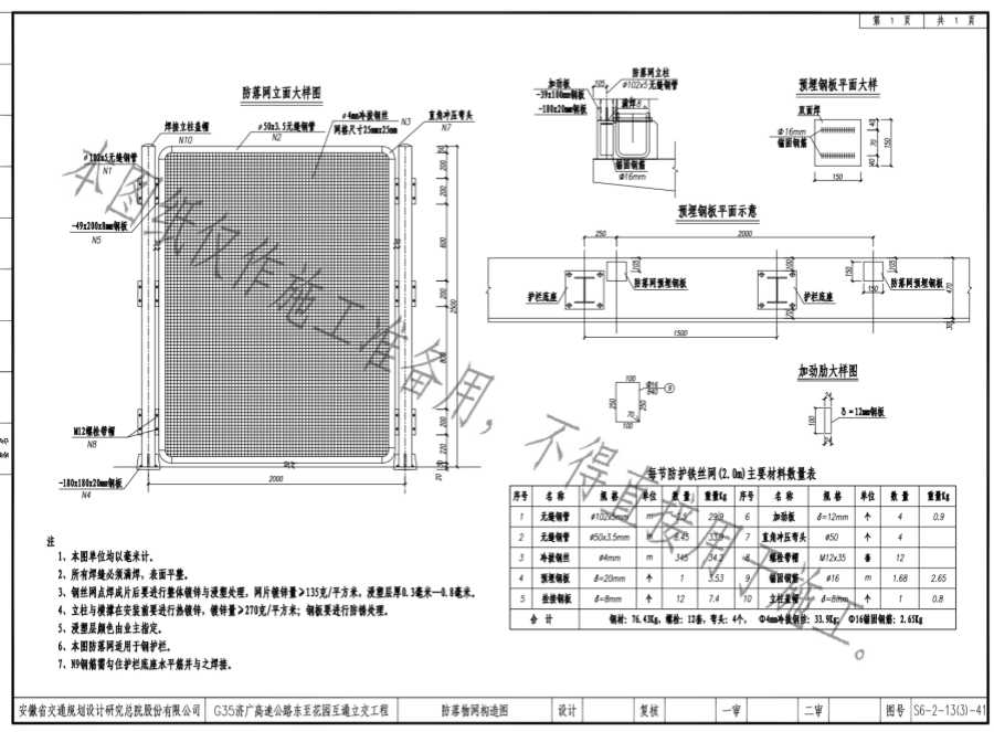 6、本圖防落網(wǎng)適用于鋼護(hù)欄。