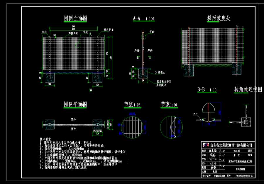 9、圍網(wǎng)基礎(chǔ)采用C30混凝土現(xiàn)澆,埋入深度250。